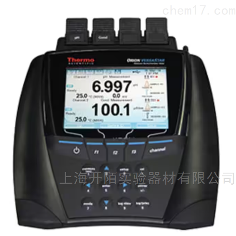 无模块 Thermo Scientific™ Orion™ Versa Star Pro™ 台式测量仪可与多达四个 Orion™ Versa Star 测量模块结合使用,构建非常有灵活性的理想电化学测量系统。
