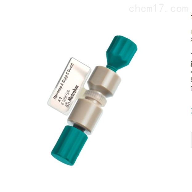 它含有与 Metrosep A Supp 5 相同的分离材料,也同样由 PEEK(聚醚醚酮)制成,并直接以几乎无死点容积的方式拧到相应分离柱上(«On Column Guard System»)。保护柱将延长分析用柱的使用寿命,且不会影响其色谱分离效率。建议使用 A Supp 5 Guard/4.0,其*且操作简单。