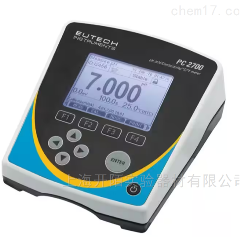 为实验室的多参数研究工作提供一体化解决方案。Eutech™ PC 2700 多参数测量仪具有准确、可靠、直观、操作方便等特点。测量仪配有多数据屏幕,包括温度、电极状态、校准点、日期和时间以及您所需的测量参数。PC 2700 可测量 pH 值、ORP、离子、电导率、TDS、盐度或电阻率。
